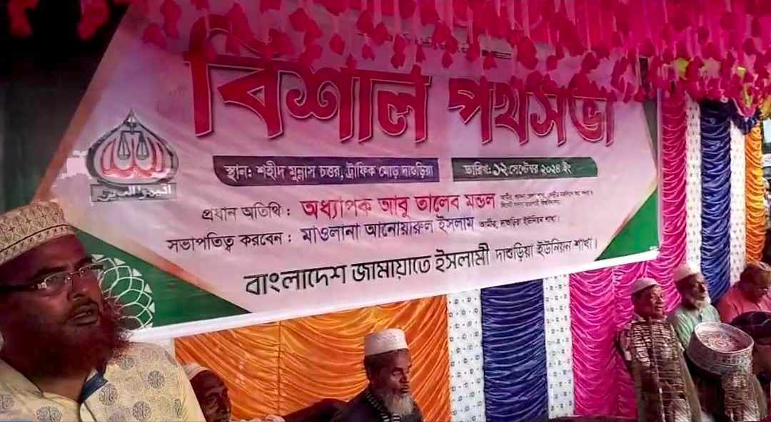 পাবনা প্রতিনিধি - পাবনার ঈশ্বরদীর দাশুড়িয়া ট্রাফিক মোড়ে বাংলাদেশ জামায়াতে ইসলামীর বিশাল জনসভা জনসমুদ্রের পরিনত হয়। মওলানা আনোয়ারুল এর সভাপতিত্বে প্রধান অতিথি হিসেবে বক্তব্য রাখেন নায়েবে আমির অধ্যাপক আবু তালেব মন্ডল।
