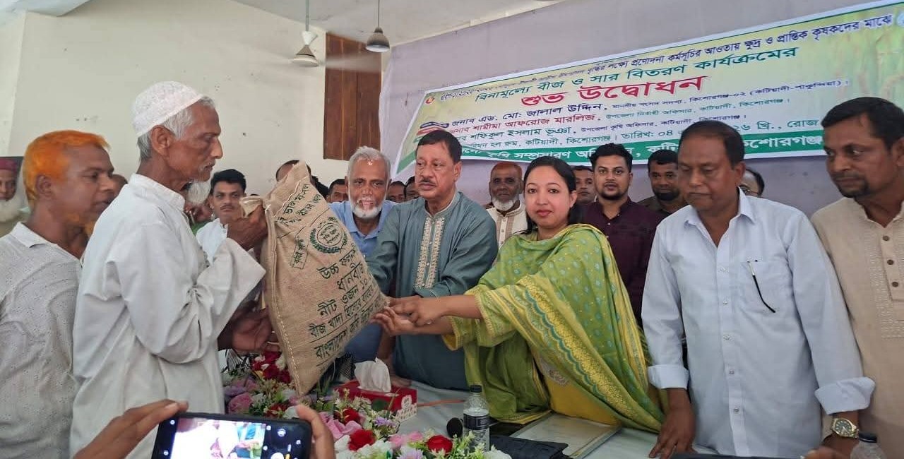 কিশোরগঞ্জের কটিয়াদীতে খরিপ ১/২০২৫-২৬ মৌসুমে উফশী আউশ উৎপাদন বৃদ্ধির লক্ষ্যে ক্ষুদ্র ও প্রান্তিক কৃষকদের মাঝে বিনামূল্যে বীজ ও সার বিতরণ কর্মসূচির উদ্বোধন করা হয়েছে।