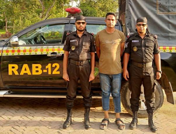 র্যাব-১২, সিপিসি-১, কুষ্টিয়া ক্যাম্পের কোম্পানী কমান্ডার সিনিঃ এএসপি মোঃ গোলাম ফারুক এর নেতৃত্বে একটি আভিযানিক দল অদ্য ২১ জুলাই ২০২৩ ইং তারিখ বিকাল ০৪:৫০ ঘটিকায় ‘‘কুষ্টিয়া জেলার সদর থানাধীন এনএস রোড পরিমল টাওয়ারের সামনে’’ একটি অভিযান পরিচালনা করে। উক্ত অভিযানে নারায়ণগঞ্জ জেলার সিআর নং-১২৯৩/১৫, সেশন ২২১৫/১৭, এনআই এ্যাক্ট ধারায় ০১ বছরের সশ্রম কারাদন্ডপ্রাপ্ত ওয়ারেন্টভুক্ত পলাতক আসামি মোঃ জাহাঙ্গীর হোসেন (৫০), পিতা-আজিজুল হক, সাং-কালিনাথপুর, থানা-মিরপুর, জেলা-কুষ্টিয়াকে গ্রেফতার করা হয়।পরবর্তীতে ধৃত আসামিকে আইনানুগ ব্যবস্থা গ্রহণের জন্য কুষ্টিয়া জেলার মিরপুর থানায় হস্তান্তর করা হয়েছে। র্যাব-১২, সিপিসি-১, কুষ্টিয়া’কে তথ্য দিন, সন্ত্রাস, অস্ত্র ও জঙ্গী মুক্ত বাংলাদেশ গঠনে অংশ নিন।