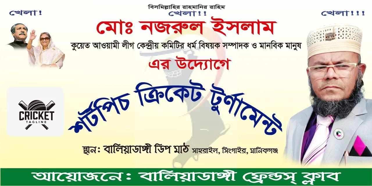 ইংরেজি নববর্ষ উপলক্ষে ও কুয়েত আওয়ামী লীগের ধর্ম বিষয়ক সম্পাদক মোঃ নজরুল ইসলামের সহযোগিতায় ও পৃষ্ঠপোষকতায় এক আর্কশণীয় রাত্রিকালীন শর্টপিচ ক্রিকেট প্রীতি ম্যাচ ২০২৪- ২রা জানুয়ারি মঙ্গলবার রাতে বালিয়াডাঙ্গী ডিপমেশিন মাঠে বালিয়াডাঙ্গী স্পোর্টস ক্লাব ক্রিকেট টুর্ণামেন্ট অনুষ্ঠিত হয়। জাঁকজমকপূর্ণ এ অনুষ্ঠানে সভাপতিত্ব করেন,স্হানীয় ইউপি চেয়ারম্যান মোঃ আব্দুল হালিম। উক্ত খেলায় প্রধান অতিথি হিসাবে উপস্থিত ছিলেন, আওয়ামী লীগ নেতা আঃ আলীম।বিশেষ অতিথি ইউপি সদস্য আবুল কালাম,সাবেক ইউপি সদস্য আব্দুল মন্নান বেপারী, ব্যবসায়ী মোঃ আল আমীন, ব্যবায়ী জোবায়ের আহমেদ, সৌদি আরব প্রবাসী মোঃ দীন ইসলাম, আবু সাইদ। পরে অতিথিরা বিজয়ী টিমের হাতে চ্যাম্পিয়ানশীপ ট্রপি তুলে দেন। অনুষ্ঠানে কুয়েত প্রবাসী আওয়ামী লীগ নেতা নজরুল ইসলামের সহযোগিতার জন্য ধন্যবাদ ও কৃতজ্ঞ প্রকাশ করেন বক্তারা।