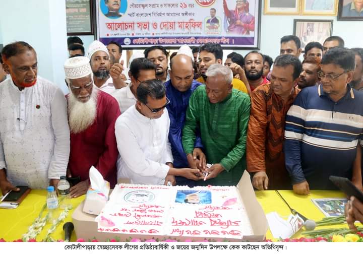 গোপালগঞ্জের কোটালীপাড়া উপজেলায় ২৭ শে জুলাই ২৯ তম আওয়ামী স্বেচ্ছাসেবক লীগের প্রতিষ্ঠাবার্ষিকী ও কেন্দ্রীয় আওয়ামী লীগের তথ্য বিষয়ক উপদেষ্টা সজীব ওয়াজেদ জয় এর ৫২ তম জন্মদিন উপলক্ষে কোটালীপাড়া উপজেলা আওয়ামী স্বেচ্ছাসেবক লীগের পক্ষ থেকে সকালে জাতীয় পতাকা ও দলীয় পতাকা উত্তোলনের মধ্য দিয়ে দিনের কর্মসূচি শুরু হয়।