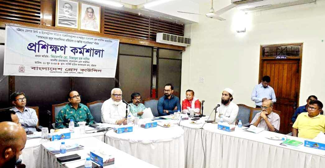 মঙ্গলবার ১১জুন নগরীর সার্কিট হাউস সম্মেলন কক্ষে চট্টগ্রাম জেলার প্রিন্ট ও ইলেক্ট্রনিক মিডিয়ার সাংবাদিকবৃন্দের অংশগ্রহণে বাংলাদেশ প্রেস কাউন্সিল আয়োজিত ও জেলা প্রশাসনের সহযোগিতায় “গণমাধ্যমে হলুদ সাংবাদিকতা প্রতিরোধ ও বস্তুনিষ্ঠ সাংবাদিকতা” শীর্ষক প্রশিক্ষণ কর্মশালা অনুষ্ঠিত হয়।