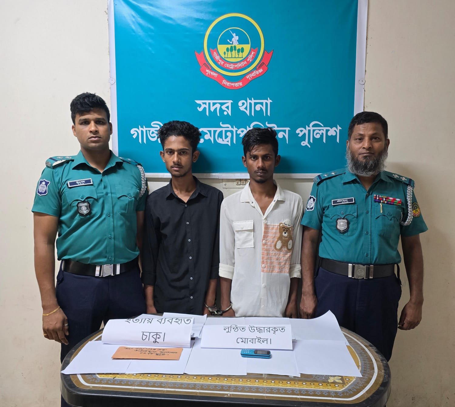 গাজীপুর মহানগরীর সদর থানা এলাকায় চাঞ্চল্যকর কলেজ ছাত্রকে ছুরিকাঘাতে খুন ও ডাকাতির মূলহোতাসহ ০২ আসামীকে গ্রেফতার করেছে জিএমপি সদর থানা পুলিশ।