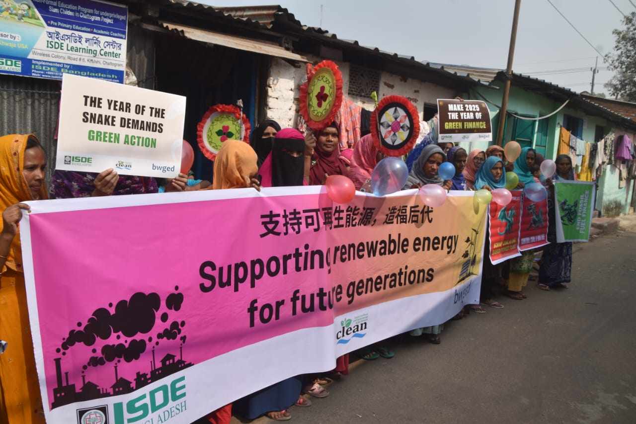 বেসরকারী উন্নয়ন সংস্থা আইএসডিই বাংলাদেশ আইএসডিই বাংলাদেশ, কোস্টাল লাইভলিহুড অ্যান্ড এনভায়রনমেন্টাল অ্যাকশন নেটওয়ার্ক (CLEAN) এবং বাংলাদেশ ওয়ার্কিং গ্রুপ অন ইকোলজি অ্যান্ড ডেভেলপমেন্ট (BWGED) এর সহযোগিতায় চট্টগ্রামে চীনা নববর্ষ ২০২৫ উপলক্ষে নানা কর্মসুচির মাধ্যমে প্রাণবন্ত উদযাপন আয়োজন করা হয়। এই অনুষ্ঠানে সাংস্কৃতিক ঐক্য প্রদর্শিত হয় এবং জলবায়ু চ্যালেঞ্জ মোকাবিলায় নবায়নযোগ্য শক্তি বিনিয়োগের আহ্বান জানানো হয়।"নবায়নযোগ্য, সমৃদ্ধি এবং টেকসইতা" শিরোনামে আয়োজিত এই অনুষ্ঠানে বিভিন্ন পক্ষের প্রতিনিধিরা নবায়নযোগ্য শক্তির মাধ্যমে বাংলাদেশের শক্তির ক্ষেত্রের রূপান্তরের সম্ভাবনা নিয়ে আলোচনা করেন। চীন এর সাথে সবুজ প্রবৃদ্ধির জন্যঅংশীদারিত্বের গুরুত্ব তুলে ধরা হয়।