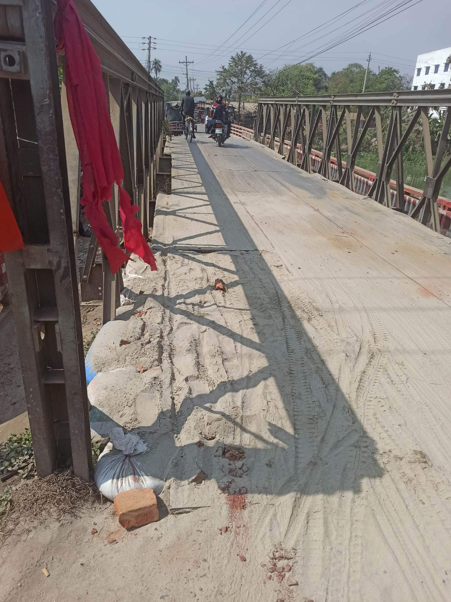মো: সালাহউদ্দীন কানন : অবশেষে অনেক অপেক্ষার পর চাঁদগ্রাম জিকে ৩ নং ব্রিজের উপর নির্মিত অস্থায়ী বেলী ব্রিজটি পুনর্নির্মাণ করা হলো। কর্তৃপক্ষকে বারবার দৃষ্টি আকর্ষণ করার পর অবশেষে ভেঙে যাওয়া লোহার পাতটি পরিবর্তন করে বালি, ইট ও বালির বস্তা দিয়ে ভঙ্গিল জায়গাটি মেরামত করা হয়। তবে বেলি ব্রিজটির মাঝখানের আরো দুটি লোহার পাত এবং পাশের পাতগুলি ভঙ্গিল অবস্থায় আছে। তাই অনতিবিলম্বে জনগণের দুর্ভোগ লাঘবের জন্য এই ব্রিজটি অচিরেই নতুনভাবে র্নির্মাণ করতে সংশ্লিষ্ট সড়ক ও জনপদ বিভাগের দৃষ্টি আকর্ষণ করছি।