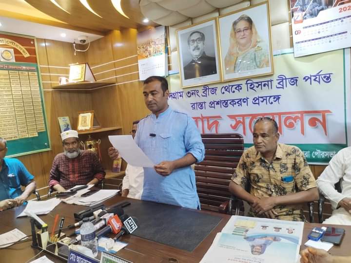 রবিউল ইসলাম মন্টু - আজ সকালে ভেড়ামারা পৌরসভা কার্যালয়ে চাঁদগ্রাম ৩নং ব্রীজ থেকে হিসনা ব্রীজ পর্যন্ত রাস্তা প্রশস্তুতকরণ প্রসঙ্গে পৌর মেয়র আনোয়ারুল কবীর টুটুল সংবাদ সম্মেলনে যে বক্তব্য রাখেন তা নিম্নরূপ -