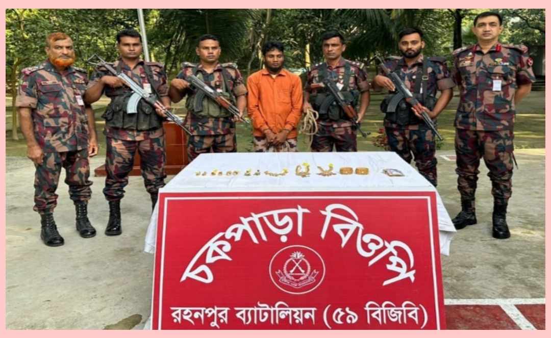 রুহুল আমীন খন্দকার, বিশেষ প্রতিনিধি :: চাঁপাইনবাবগঞ্জের শিবগঞ্জ উপজেলার চকপাড়া সীমান্তে এবার ৪৪ ভরি স্বর্ণ সহ একজনকে আটক করেছে ৫৯ বিজিবি ব্যাটালিয়নের সদস্যরা। গতকাল বৃহষ্পতিবার (১২ অক্টোবর) ২০২৩ ইং সন্ধ্যায় স্বর্ণগুলো জব্দ করা হলেও পরদিন আজ শুত্রবার দুপুরে বিষয়টি নিশ্চিত করে বিজিবি। আটক ওই ব্যক্তি ভোলাহাট উপজেলার চামুচা গ্রামের মৃত লোকমান আলীর ছেলে মোঃ আব্দুর রাহিম (৩০)।