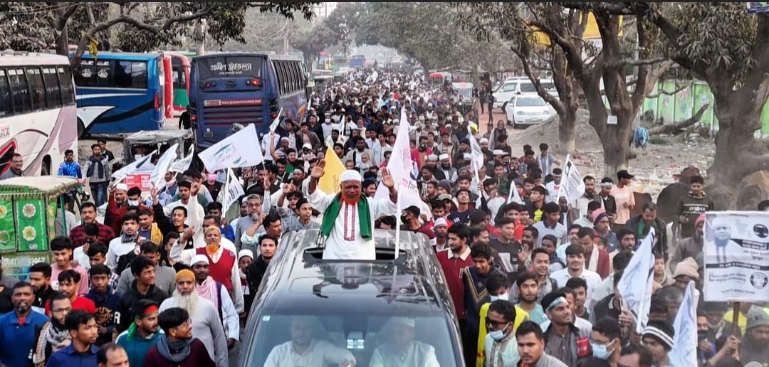 চাঁপাইনবাবগঞ্জ-৩ আসনে (সদর) বাংলাদেশ জামায়াতে ইসলামী মনোনীত দাঁড়িপাল্লা প্রতীকের মোঃ নূরুল ইসলাম বুলবুলের সমর্থনে বিশাল গণমিছিল বের করা হয়। বাংলাদেশ জামায়াতে ইসলামী, চাঁপাইনবাবগঞ্জ জেলা শাখা আয়োজিত জামায়াত ইসলামী সমর্থিত হাজার হাজার নেতাকর্মীর অংশগ্রহণে গতকাল রোববার বিকেলে জেলা শহরের বড় ইন্দারা মোড়ে থেকে বের হয়ে বাতেন খাঁ মোড় হয়ে বিশরোড মোড় হয়ে নবাবগঞ্জ সরকারি কলেজের সামনে গিয়ে সমাবেশ অনুষ্ঠিত হয়। সমাবেশে দাঁড়িপাল্লা প্রতীকের মোঃ নূরুল ইসলাম বুলবুল তার বক্তব্যে বলেন, ন্যায় ও ইনসাফের বাংলাদেশ গড়তে