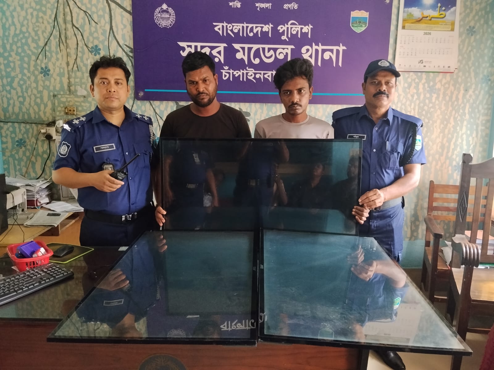 চাঁপাইনবাবগঞ্জ জেলা শহরের অবস্থিত ইউনাইটেড স্ট্যান্ডার্ড স্কুলের চুরি হওয়া ৩টি ৪০ ইঞ্চি স্মার্ট টিভি উদ্ধার সহ দুই চোরকে গ্রেফতার করেছে সদর মডেল থানা পুলিশ।