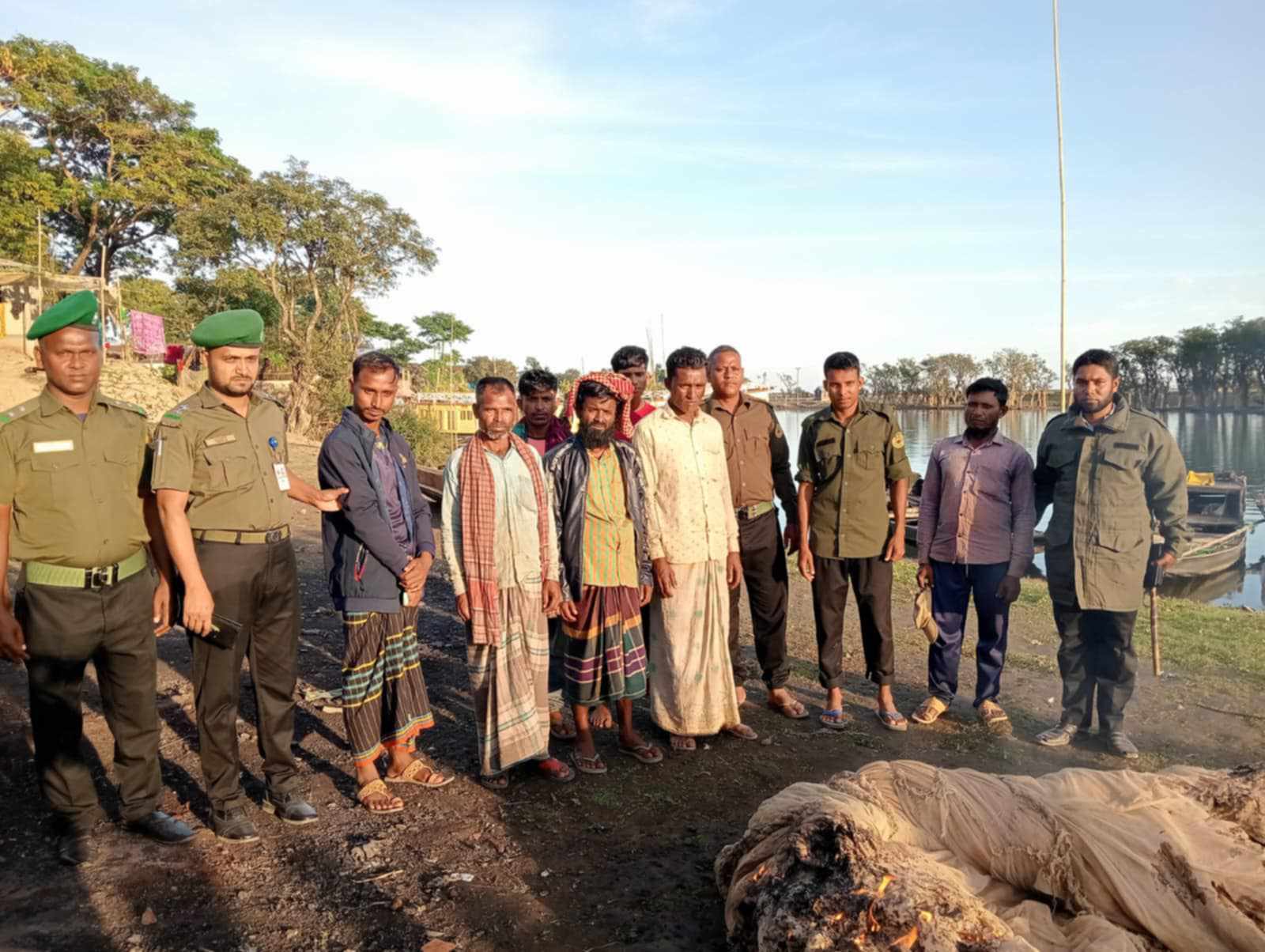সুনামগঞ্জ তাহিরপুর পরিচালনা করে ২টি নৌকাসহ নিষিদ্ধ কোনাজাল আটক করা হয়েছে এবং ঘটনাস্থল থেকে ৬ জন ব্যক্তিকে আটক