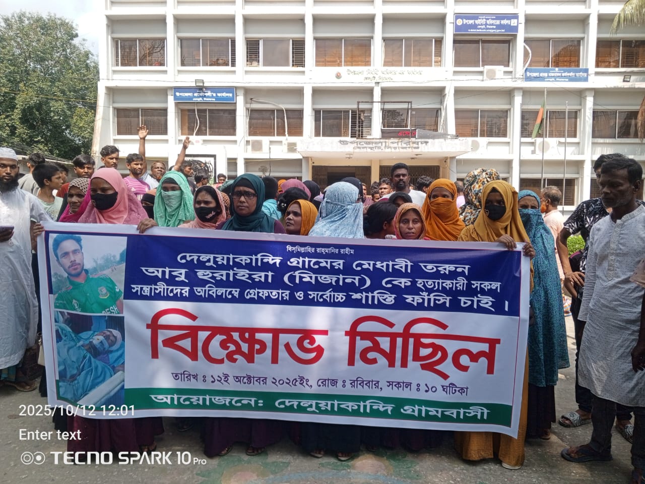 সিরাজগঞ্জের বেলকুচি উপজেলা ৩নং ভাঙ্গাবাড়ী ইউনিয়নের দেলুয়াকান্দি গ্রামে তুচ্ছ ঘটনাকে কেন্দ্র করে মোঃ আমজাদের ছেলে মোঃ আবু হুরায়রা মিজান (২২) নামের এক কিশোর কে হাতুরি দিয়ে বেধরকভাবে পিটিয়ে হত্যা করেছে একই ইউনিয়নের উত্তর চন্দনগাঁতী গ্রামের দুর্বৃত্তরা। উক্ত ঘটনার প্রকৃত হত্যাকারীদের ফাঁসির দাবীতে বিক্ষোভ মিছিল করেছে এলাকাবাসী। স্থানীয় সূত্রে জানা যায় যে, গত ৮ই অক্টোবর রোজ বুধবার বিকেলে দেলুয়াকান্দি উত্তরপাড়ার মাঙ্গন মতিনের বাড়ির সামনে আবু হুরায়রা ওরফে মিজান( ২২) কে উত্তর চন্দনগাঁতী গ্রামের স্থানীয় দুর্বৃত্তরা মিলে হাতুড়ি দিয়ে মিজানের মাথায় প্রচন্ড আঘাত করে যার ফলে মিজান অজ্ঞান হয়ে মাটিয়ে লুটিয়ে পড়ে। অবস্থা খারাপ হওয়ায় দুর্বৃত্তরা পালিয়ে যায়। স্থানীয় সূত্রে জানা যায় গত ৬ ই অক্টোবর সিগারেট জ্বালানোর জন্য দিয়াশলাই চাওয়া নিয়ে বাক বিতর্ক হয়, দুপক্ষের, পরে মিজান বিষয়টি নিয়ে দু-পক্ষকে মিলিত করে দেয়ার চেষ্টা করে। তারই জের ধরে এই হত্যাকান্ড ঘটে। পরবর্তীতে স্থানীয় বাসিন্দারা তাকে চিকিৎসার জন্য হাসপাতালে প্রেরন করে, তিনদিন চিকিৎসা চলা অবস্থায় কর্তব্যরত চিকিৎসক মিজান কে মৃত বলে ঘোষনা করে। এতে মিজানের পরিবার ও তার এলাকায় শোকের ছায়া নেমে আসে। উক্ত ঘটনাকে কেন্দ্র করে এরাকায় উত্তেজনা বিরাজ করে। উত্তর চন্দনগাঁতীর বাসিন্দাগন নিরাপত্তার ক্ষেত্রে ঘরের আসবাবপত্র ও গৃহপালিত পশুপাখি নিয়ে সবাই এলাকা ছেরে অন্যত্র চলে যাচ্ছে। নিরাপত্তার ক্ষেত্রে ঘটনাস্থলে পুলিশ মোতায়ন করা হয়েছে। পরবর্তীতে ১২ই অক্টোবর সকাল ১০ ঘটিকার সময় স্থানীয় এলাকাবাসী বেলকুচি থানায় সামনে ও উপজেলা চত্বররে মিজানের হত্যাকারীদের ফাঁসির দাবীতে একটি বিক্ষোভ মিছিল অনুষ্ঠিত হয়। বিক্ষোভ মিছিলে অপরাধীদের ২৪ ঘন্টার মধ্যে গ্রেফতার করে আইনের আওতায় আনার দাবী জানান, প্রসাশন গ্রেফতার করতে ব্যর্থ হলে আইন হাতে তুলে নেয়ার হুশিয়ার দেন বিক্ষোভ কারীরা। এ ব্যাপারে কেউ গ্রেফতার হয়নি, অভিযুক্তরা সবাই পলাতক রয়েছে। মিজানের পরিবার হত্যার ঘটনার থানায় মামলা করেছে ও বিক্ষোভকারীরা বেলকুচি উপজেলা নির্বাহী অফিসারের বরাবর স্মারক লিপি প্রদান করেন।