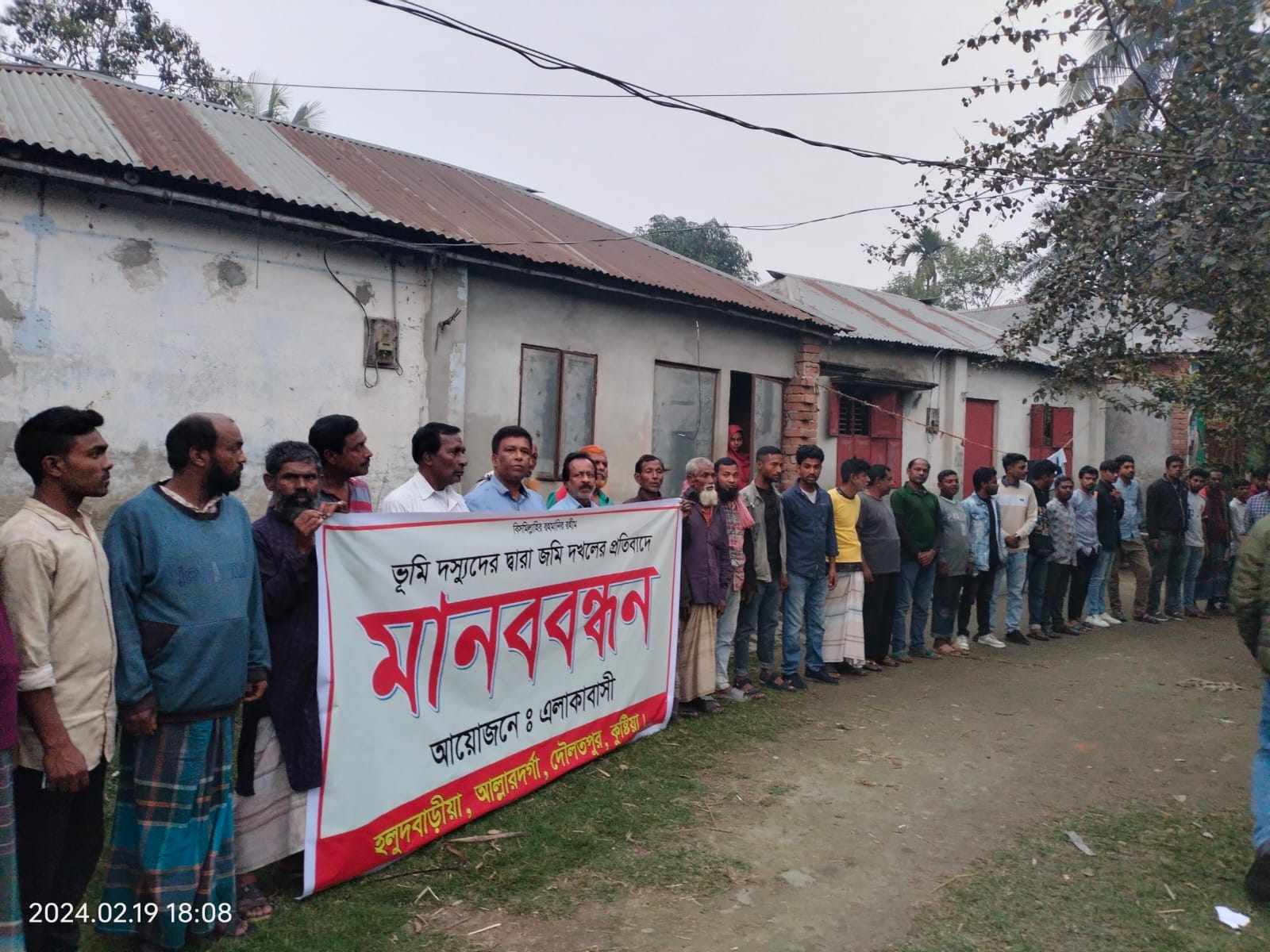 কুষ্টিয়ার দৌলতপুর উপজেলার হলুদবাড়ি গ্রামে অন্যদের জমি দখল করে নাসির গ্রুপকে রাস্তা হিসেবে লিজ দেওয়ার প্রতিবাদে মানববন্ধন করেছে জমির মালিক সহ এলাকাবাসী।