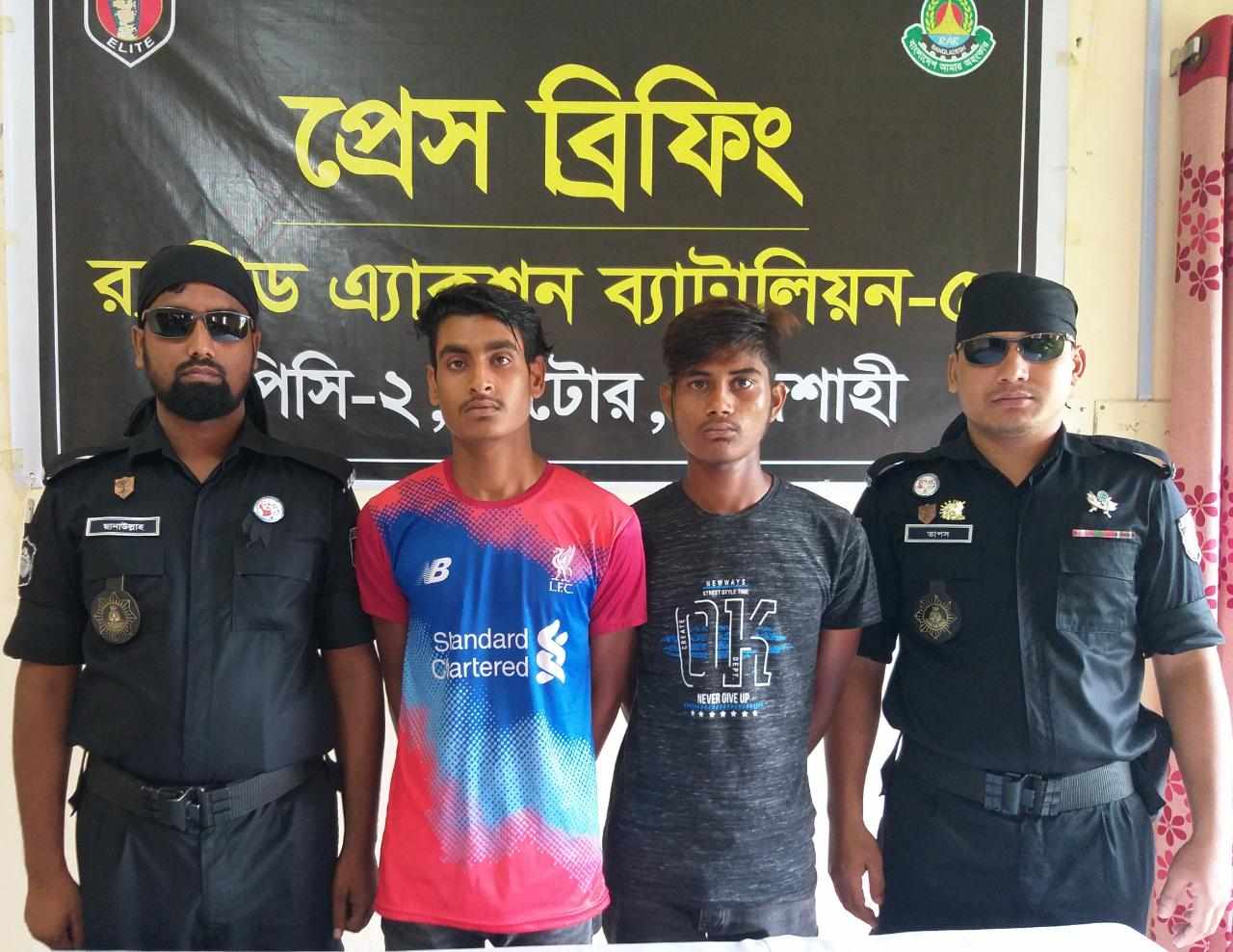 নওগাঁর মান্দায় চাঞ্চল্যকর হত্যাকান্ডের মূলপরিকল্পনাকারী নাহিদ ও তার সহোযাগী তুহিন ইসলাকে গ্রেফতার করে র্যাব।
