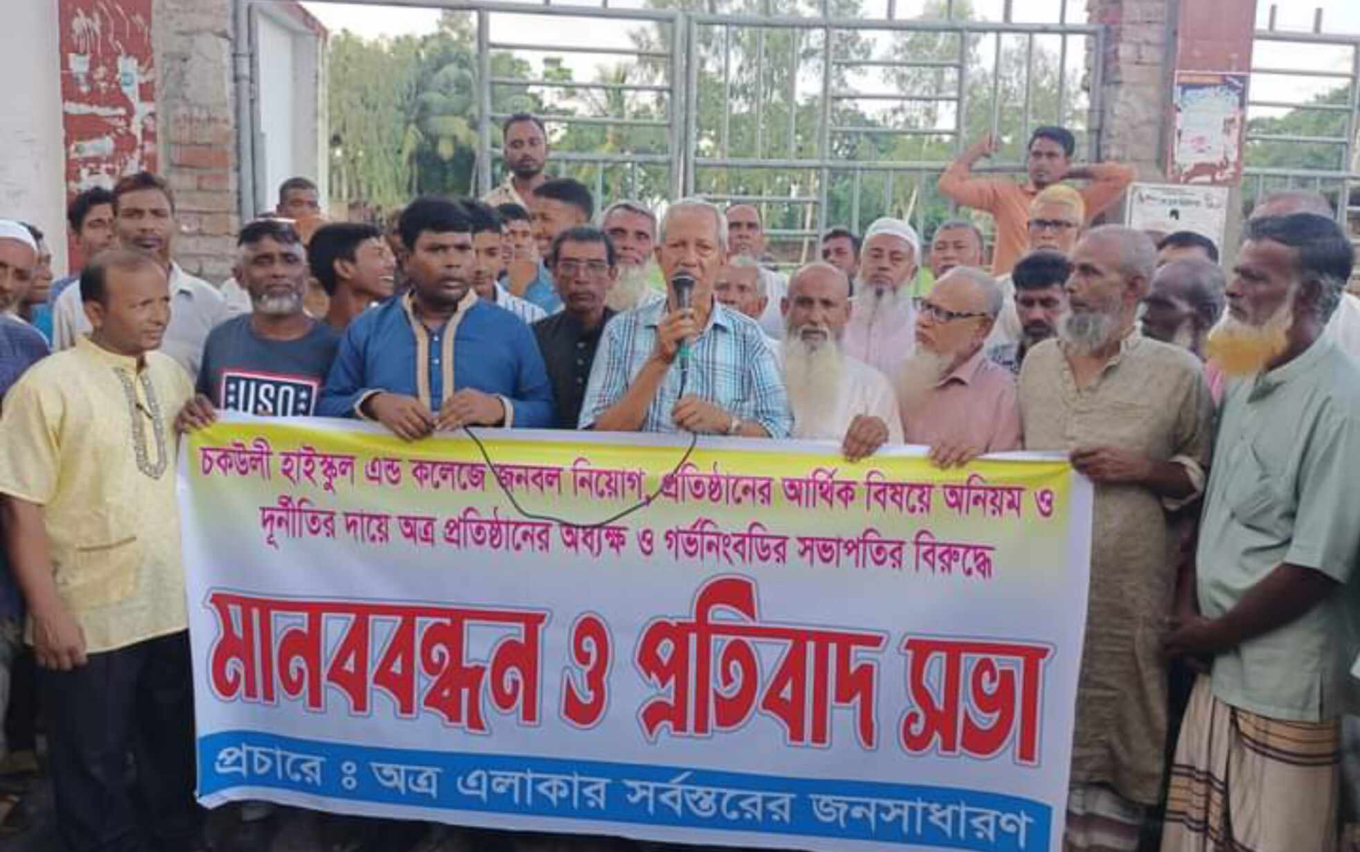 নওগাঁ মান্দা উপজেলার চকউলী বহুমুখী উচ্চ বিদ্যালয় এন্ড কলেজের প্রধান শিক্ষক ও ম্যানেজিং কমিটির সভাপতির বিরুদ্ধে নানান দুর্নীতি, অনিয়ম, স্বজনপ্রীতি, স্বেচ্ছাচারিতা এবং অর্ধ কোটি টাকার নিয়োগ বাণিজ্য বন্ধের দাবিতে মানববন্ধন ও প্রতিবাদ সভা অনুষ্ঠিত হয়েছে।