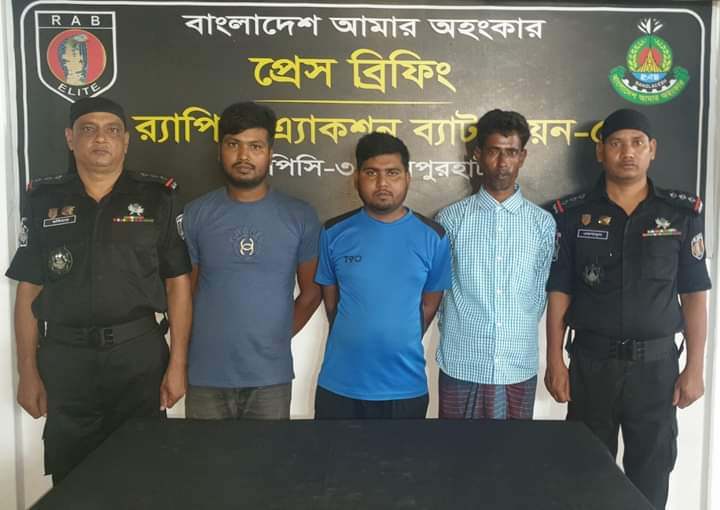 শনিবার (২০ এপ্রিল) রাত ১০ টা ৩০ মিনিটে গোয়েন্দা তথ্যের ভিত্তিতে, সিপিসি-৩, জয়পুরহাট র্যাব ক্যাম্পের একটি চৌকস টিম অভিযান চালিয়ে তাদের আটক করে।