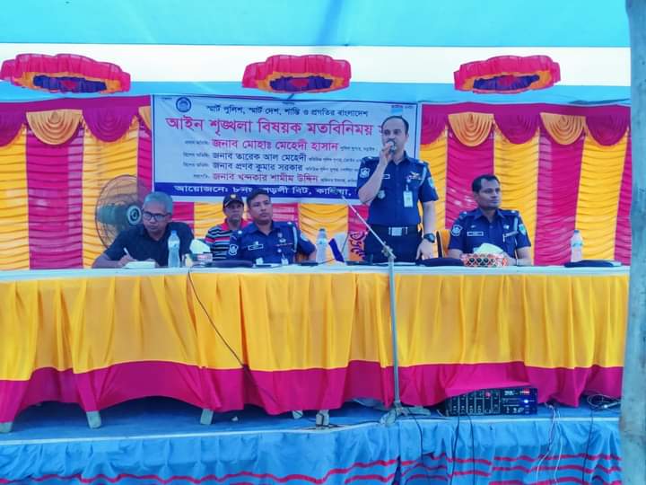 কালিয়া থানা। অতিরিক্ত পুলিশ সুপার তারেক আল মেহেদী তার বক্তব্যে বলেন, আগামী ৮ই মে কালিয়া উপজেলা নির্বাচন অনুষ্ঠিত হবে। নির্বাচনকে সুষ্ঠু, নিরপেক্ষ ও শান্তিপূর্ণভাবে সম্পন্ন করতে নড়াইল জেলা পুলিশ পেশাদারিত্বের সঙ্গে দায়িত্ব পালন করবে। যদি কোন পুলিশ সদস্য পক্ষপাতিত্ব করে তাহলে তার বিরুদ্ধে শাস্তিমূলক ব্যবস্থা গ্রহণ করা হবে। এছাড়া তিনি এলাকাবাসীকে মানবাধিকার লঙ্ঘন হয় এমন কাজ করা থেকে বিরত থাকতে আহ্বান করেন। যে অপরাধ করবে তাকে আইনের আওতায় আনা হবে বলে জানান।