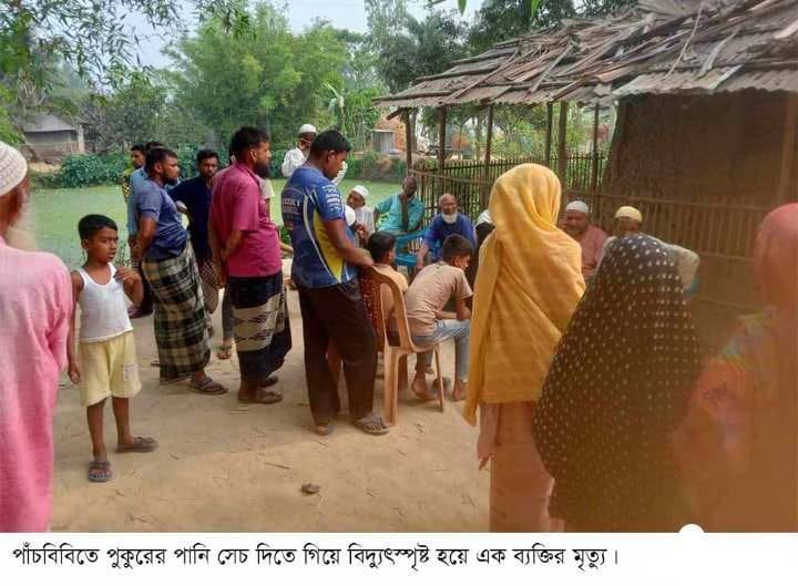 স্থানীয় ইউপি সদস্য ফরিদুল ইসলাম জানান, “পুকুরের পানি সেচ দিয়ে মাছ ধরার জন্য শনিবার ভোররাতে বৈদ্যুতিক মটরের সুইচ দেন। কিন্তুু মটরের পানি না ওঠার কারনে তিনি মটরের তার চেক করতে গিয়ে বিদ্যুস্পৃষ্ট হয়ে ঘটনাস্থলে মৃত্যু হয় তার। পরে পরিবারের লোকজন পুকুর পাড়ের মাটিতে পড়ে থাকতে দেখে, মরদেহ বাড়িতে নিয়ে আসেন।