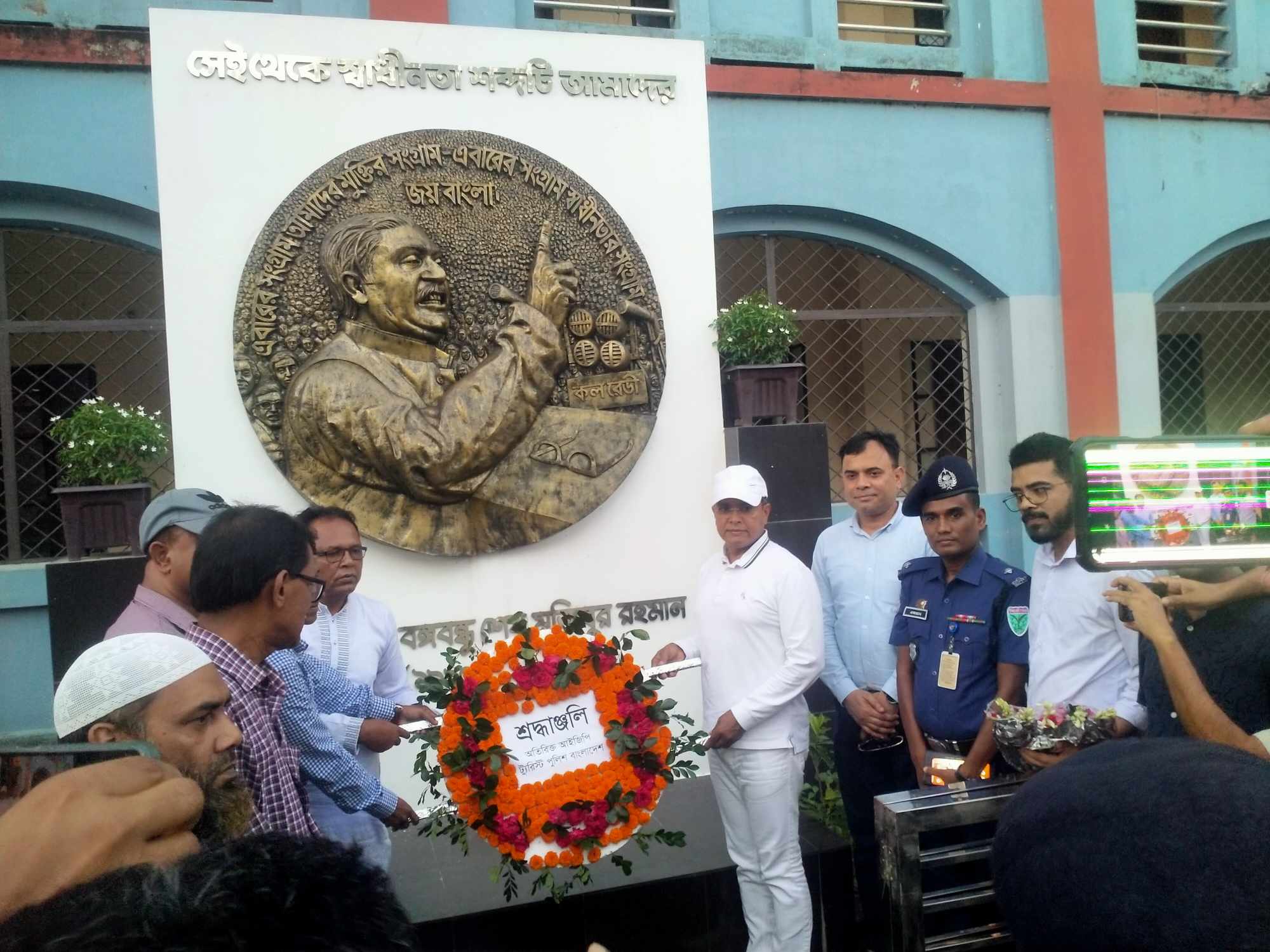 সুনামগঞ্জের মধ্যনগর বিশ্বেশ্বরী পাবলিক উচ্চ বিদ্যালয় ও কলেজে জাতির পিতা বঙ্গবন্ধু শেখ মুজিবুর রহমানের ম্যুরালে পুষ্পস্তবক অর্পণ করেছেন বাংলাদেশ পুলিশের অতিরিক্ত আইজিপি ও ট্যুরিস্ট পুলিশ প্রধান হাবিবুর রহমান বিপিএম(বার),পিপিএম(বার)।