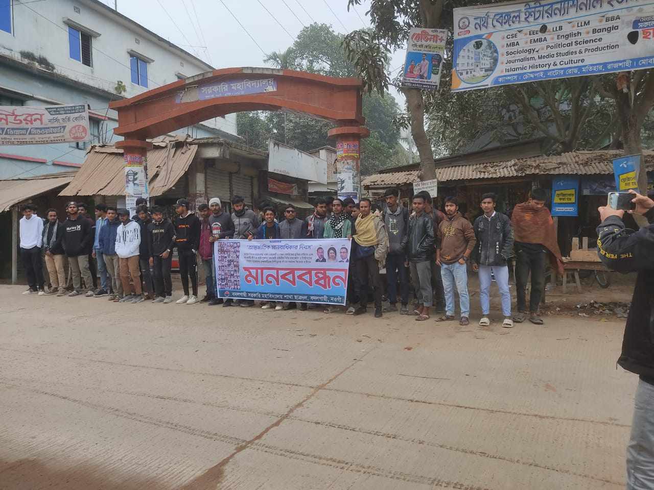 নওগাঁর বদল গাছীতে বিশ্ব মানবাধিকার দিবস উপলক্ষে মানব বন্ধন অনুষ্ঠিত হয়েছে।