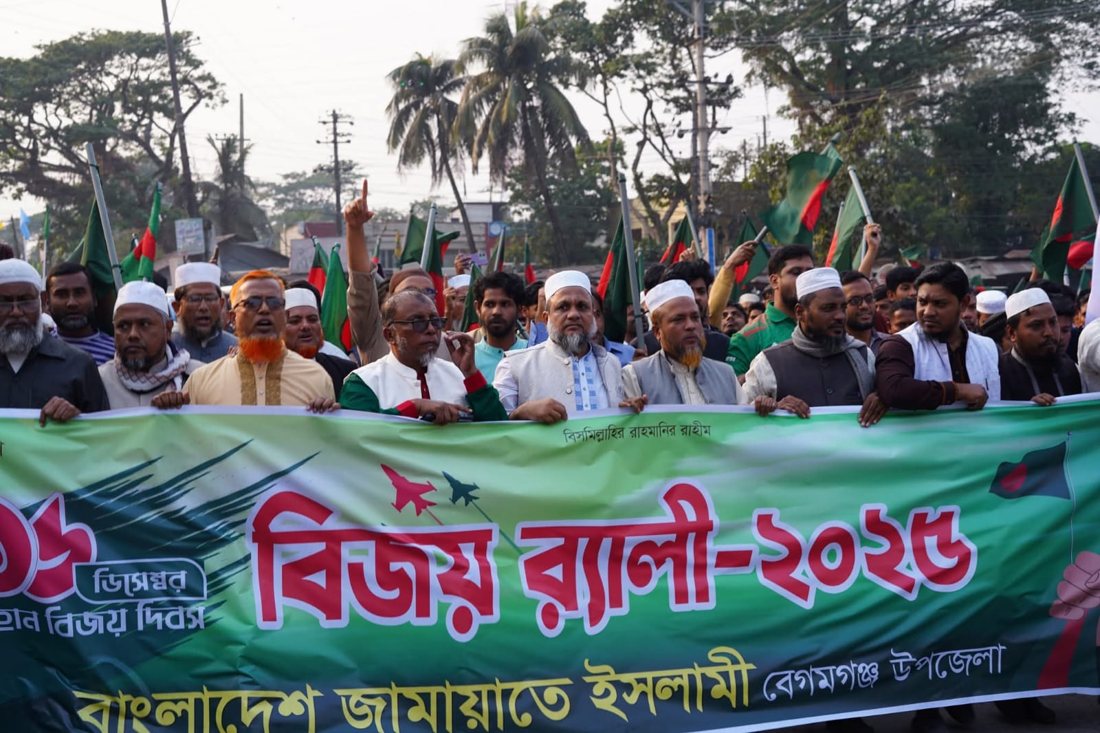 মহান বিজয় দিবস উপলক্ষে বাংলাদেশ জামায়াতে ইসলামী নোয়াখালীর বেগমগঞ্জ উপজেলা ও চৌমুহনী পৌর শাখার উদ্যোগে বিজয় র্যালিতে বাধভাঙ্গা উল্লাসে উপচে পড়া ভিড় দেখা যায়, ন্যায় ইনসাফের নতুন বাংলাদেশ গড়ার শপথ নিয়ে র্যালীতে আনন্দ শ্লোগান দিয়ে এগিয়ে যায় বিভিন্ন ইউনিয়ন থেকে আসা নেতাকর্মীরা।
