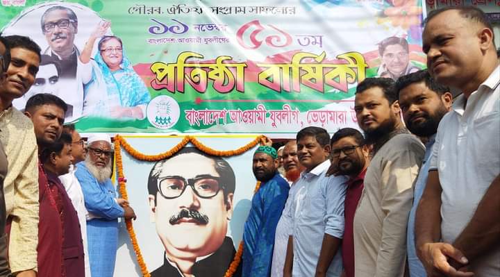 আজ শনিবার সকালে দিবসটি পালন উপলক্ষে ভেড়ামারা উপজেলা যুবলীগ আয়োজিত বিভিন্ন কর্মসূচির অংশ হিসেবে দলীয় কার্যালয়ের সামনে নেতাকর্মীদের উপস্থিতিতে জাতীয় পতাকা উত্তোলন,কেক কাটা অনুষ্ঠান'সহ বিভিন্ন কর্মসূচি পালন করা হয়।
