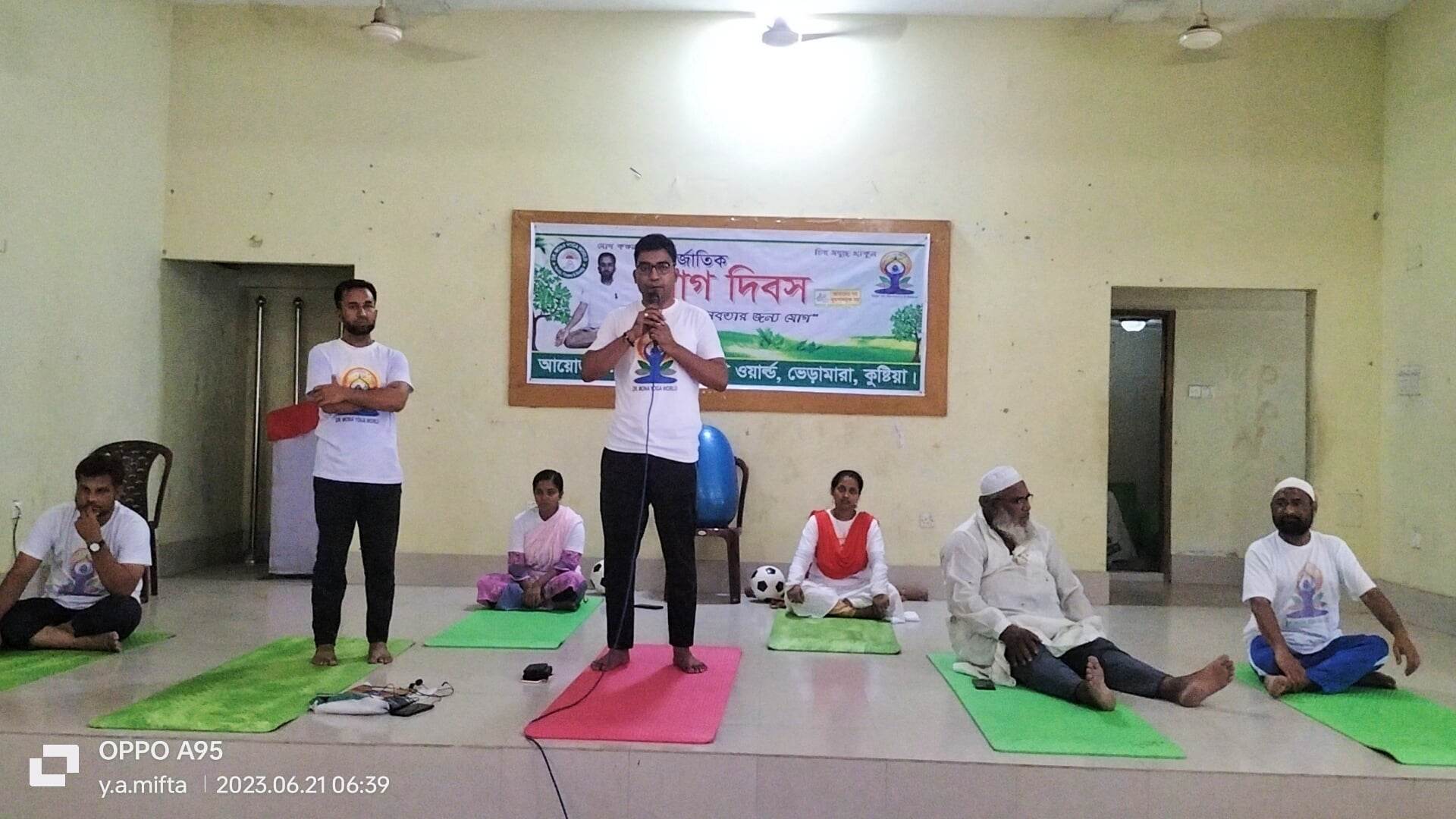 বিশ্বের সাথে তালমিলিয়ে কুষ্টিয়ার ভেড়ামারায় আজ সকালে জাঁকজমকপূর্ণ ভাবে আন্তর্জাতিক যোগ দিসব পালিত হয়। যোগের গুরুত্ব, সুস্থায় যোগ, মানবতার জন্য যোগ ইত্যাদির উপর আলোচনা করা হয়। ডাঃ কামরুল ইসলাম মনা বলেন, আগামী শতাব্দী যোগের শতাব্দী। এ সময়ে উপস্থিত ছিলেন, ভেড়ামারা উপজেলা চেয়ারম্যান আলহাজ্ব আক্তারুজ্জামান মিঠু এবং উপজেলা নির্বাহী কর্মকর্তা আকাশ কুমার কুন্ডু, সাবেক মেয়র আলহাজ্ব শামীমুল ইসলাম ছানা, ভেড়ামারা উপজেলা স্বাস্থ্য কমপ্লেক্স এর মেডিকেল অফিসার ডাঃ শরিফুল ইসলাম, ভেড়ামারা প্রেসক্লাবের সভাপতি জাহাঙ্গীর হোসেন জুয়েল প্রমুখ। সেইসাথে যোগে সহায়তাকারী সকল ছাত্র ছাত্রীদের।