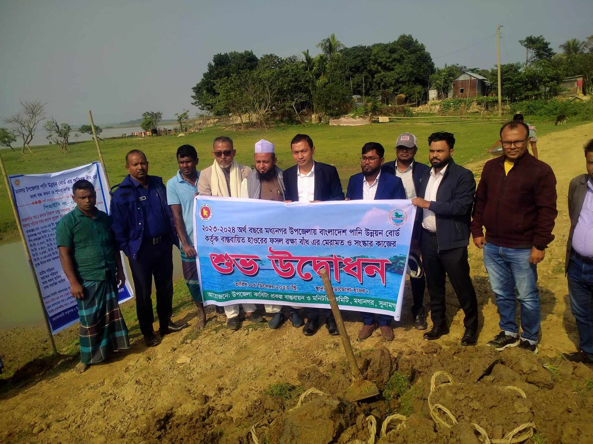 সুনামগঞ্জের মধ্যনগরে সংশোধিত কাবিটা নীতিমালা ২০১৭ অনুযায়ী ২০২৩-২০২৪ অর্থ বছরে উপজেলাধীন হাওরের ডুবন্ত বাঁধের ভাঙন বন্ধকরণ /মেরামত কাজের শুভ উদ্ভোধন করা হয়েছে।