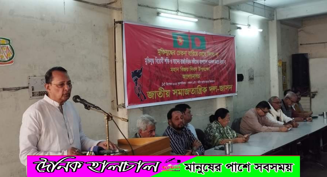 মহান বিজয় দিবস উপলক্ষ্যে জাতীয় সমাজতান্ত্রিক দল-জাসদ কেন্দ্রীয় কার্যকরী কমিটির উদ্যোগে আজ ১৫ ডিসেম্বর বৃহস্পতিবার সকাল ১১ টায় বঙ্গবন্ধু এভিনিউয়ে শহীদ কর্নেল তাহের মিলনায়তনে আলোচনাসভা অনুষ্ঠিত হয়।