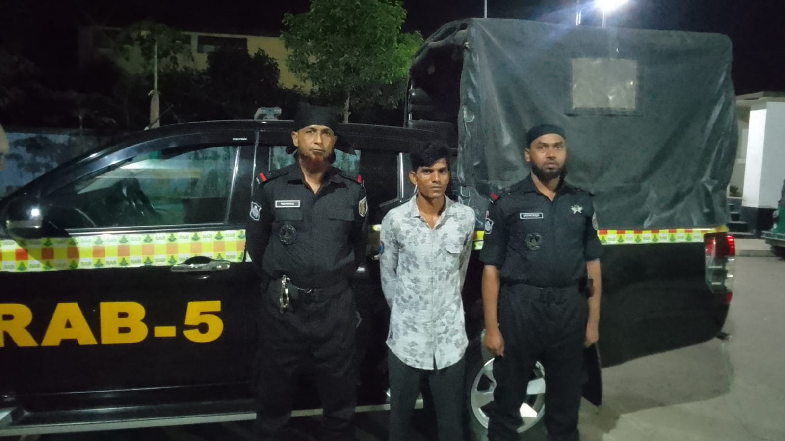 চাঁপাইনবাবগঞ্জ ক্যাম্প র্যাব-৫, রাজশাহী এর একটি আভিযানিক দল ২০ এপ্রিল ২০২৪ ইং তারিখ ২২:৩০ ঘটিকায় গোয়েন্দা তথ্যের ভিত্তিতে, চাঁপাইনবাবগঞ্জ জেলার ভোলাহাট থানাধীন বড়গাছি বাজার এলাকা হতে জিআর মামলা নং ৯৬/১৯(ভোলাহাট) এর মাদকদ্রব্য মামলায় ০৫ বছরের সাজাপ্রাপ্ত পলাতক আসামী মোঃ আরিফুল ইসলাম (২৮), পিতা-আজগারগানওয়ালা, সাং-মুন্সিগঞ্জ, থানা-ভোলাহাট, জেলা-চাঁপাইনবাবগঞ্জকে গ্রেফতার করে।