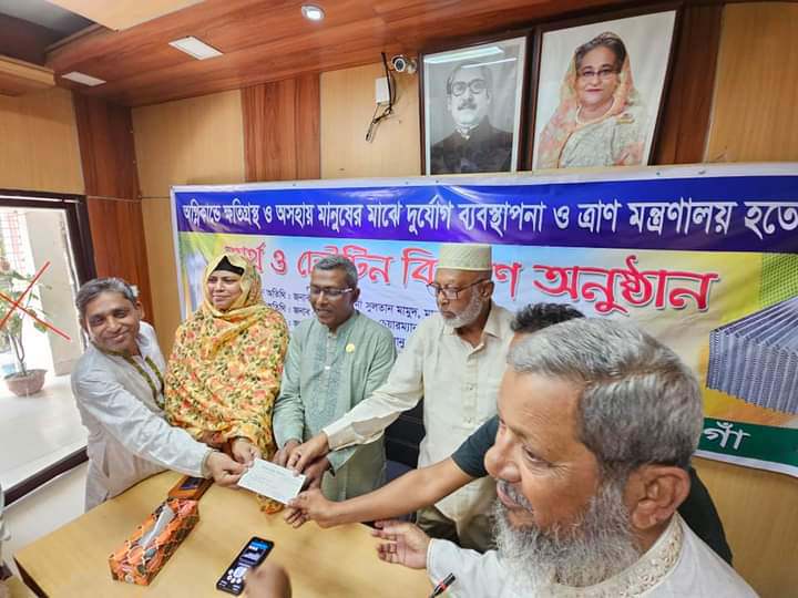 মাষ্টার আবু হেনা, ইউপি চেয়ারম্যান নওফেল আলী মন্ডল,আনিসার রহমান,আব্দুস সালাম, এস এম গোলাম আজম ও তোফাজ্জল হোসেন প্রমূখ। শেষে ১৬ ক্ষতিগ্রস্ত পরিবারের মাঝে ১৬ বাণ্ডিল ঢেউটিন ও ৪৮ হাজার টাকার চেক বিতরণ করা হয়।