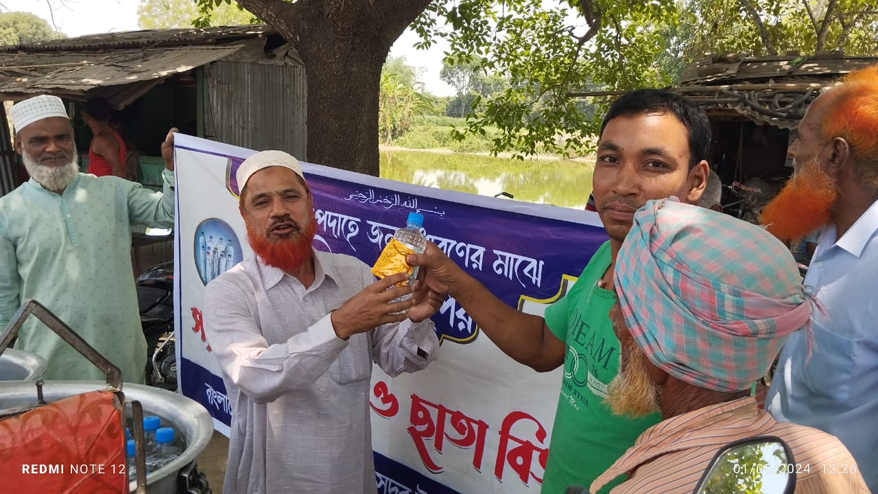 মেহেরপুর সদর উপজেলা কুলবাড়ীয়া বাজারে ও উজুলপুর বাজারে তাপওদাহে তৃষ্ণার্ত পথচারী মাঝে মেহেরপুর সদর উপজেলা জামাতে ইসলামি উদ্যোগে পানি ও শরবত, স্যালাইন, ছাতা বিতরণ করেন, এসময় উপস্থিত ছিলেন,