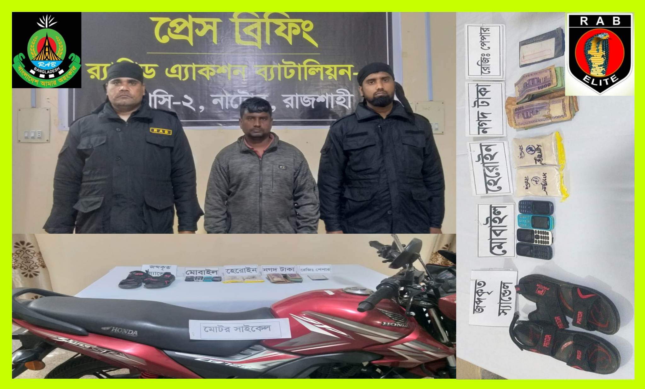 এরই ধারাবাহিকতায় সিপিসি-২, নাটোর ক্যাম্প, র্যাব-৫, রাজশাহীর একটি অপারেশন দল গতকাল শনিবার ২১ জানুয়ারি ২০২৩ ইং তারিখ সন্ধ্যা ৫-টা ৩০ ঘটিকায় নিজস্ব গোয়েন্দা তথ্যের ভিত্তিতে নাটোর জেলার সদর থানাধীন চক-বদ্যনাথ (গুড়ের আরত) এলাকায় অভিযান পরিচালনা করেন।