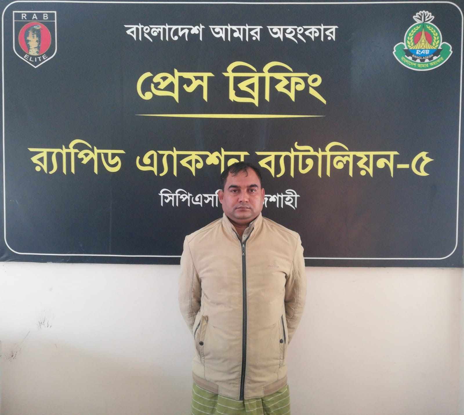 ঘটনার বিবরণে প্রকাশ : গোপন সংবাদের ভিত্তিতে র্যাব-৫, সিপিএসসি এর একটি চৌকস আভিযানিক দল জানতে পারে যে, রাজশাহী জেলার বাঘা থানাধীন আলাইপুর নামক এলাকায় ০১ জন মাদক ব্যবসায়ী নিজ বসতবাড়ীতে অবৈধ মাদকদ্রব্য মজুদ রেখে বিক্রয়ের উদ্দেশ্যে অবস্থান করছে। পরবর্তীতে র্যাবের আভিযানিক দল আসামীর গতিবিধি পর্যবেক্ষন করে এবং অদ্য তারিখে গভীর রাতে একটি চৌকস আভিযানিক দল উক্ত মাদক ব্যবসায়ীর বাড়ীতে অভিযান পরিচালনা করে চপল আলী (৩৮) নামে ০১ জন মাদক ব্যবসায়ীকে গ্রেফতার করেন।