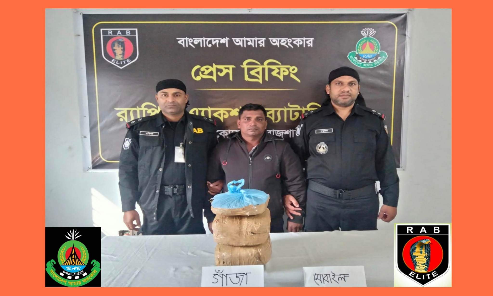 ওই সময় আয়েশা ফার্মেসির সামনে পাকা রাস্তার উপর হতে বর্ণিত আসামী- মোঃ মাহতাব আলী (৪৫) পিতা- আরিফ মন্ডল, মাতা- জাহিদা খাতুন, সাং- বড়বড়িয়া, থানা- চারঘাট, জেলা- রাজশাহীকে মাদকদ্রব্য'সহ গ্রেফতার করতে সক্ষম হন। গ্রেফতারকৃত আসামীর হেফাজত হতে যথাক্রমে, (ক) ০৫ কেজি গাঁজা, (খ) মোবাইল ফোন ০১টি, (গ) সিম কার্ড ০১ টি উদ্ধার করা হয়।