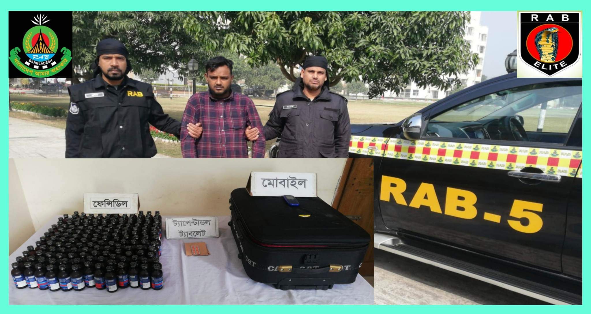 আসামীকে প্রাথমিক জিজ্ঞাসাবাদে জানা যায় যে, তার সাথে থাকা লাগেজ ব্যাগে অবৈধ মাদকদ্রব্য ফেনসিডিল ও ট্যাপেন্টাডল ট্যাবলেট রয়েছে। উক্ত অবৈধ মাদকদ্রব্য অজ্ঞাত ব্যক্তির নিকট হতে ক্রয় করে ঢাকায় বিক্রয়ের জন্য গমনের উদ্দেশ্যে উক্ত ঘটনাস্থলে অবস্থান করছিল।