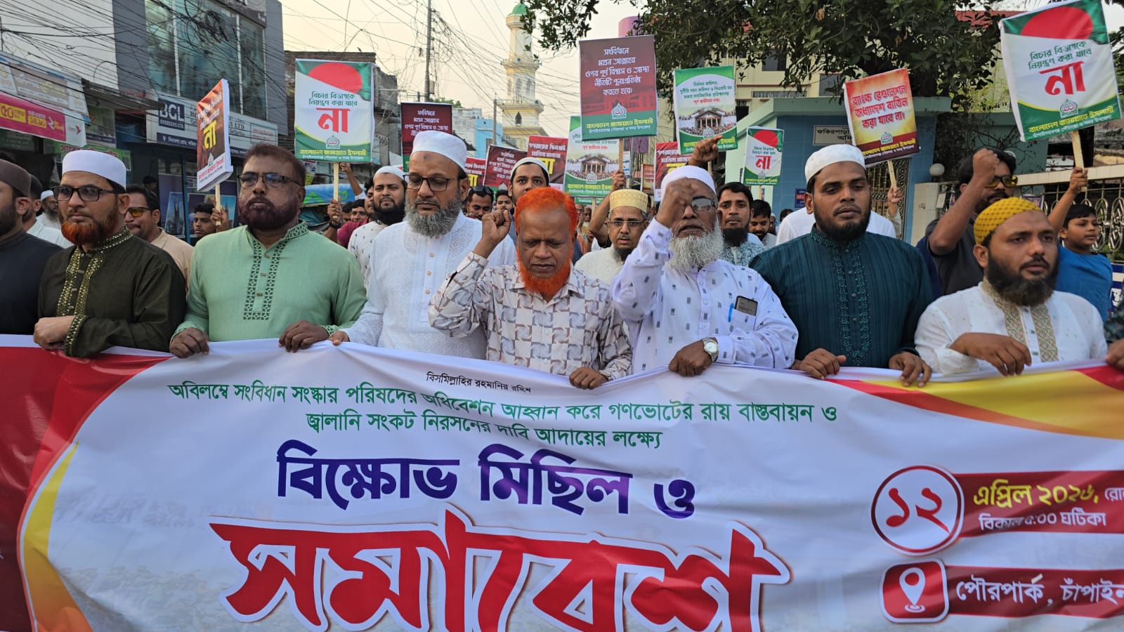 সংবিধান সংস্কারের দাবিতে চাঁপাইনবাবগঞ্জে বিক্ষোভ মিছিল ও সমাবেশ করেছে বাংলাদেশ জামায়াতে ইসলামীসহ ১১ দলীয় জোট।