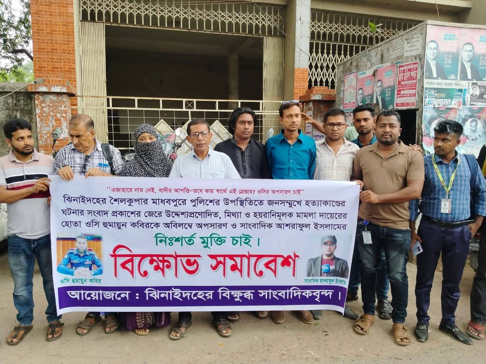 সোমবার দুপুরে ঝিনাইদহ প্রেসক্লাবের সামনে আয়োজিত এক মানববন্ধনে বক্তারা অভিযোগ করেন, শৈলকুপার এক কর্মরত সাংবাদিককে পরিকল্পিতভাবে একটি হত্যা মামলায় জড়িয়ে গ্রেপ্তার করে কারাগারে পাঠানো হয়েছে। অথচ সংশ্লিষ্ট মামলার বাদীপক্ষ নিজেই প্রকাশ্যে দাবি করেছেন, ওই সাংবাদিক ঘটনার সাথে জড়িত নন। এমনকি সামাজিক যোগাযোগমাধ্যমে ছড়িয়ে পড়া ভিডিওতেও বাদীর বক্তব্যে একই বিষয় উঠে এসেছে।