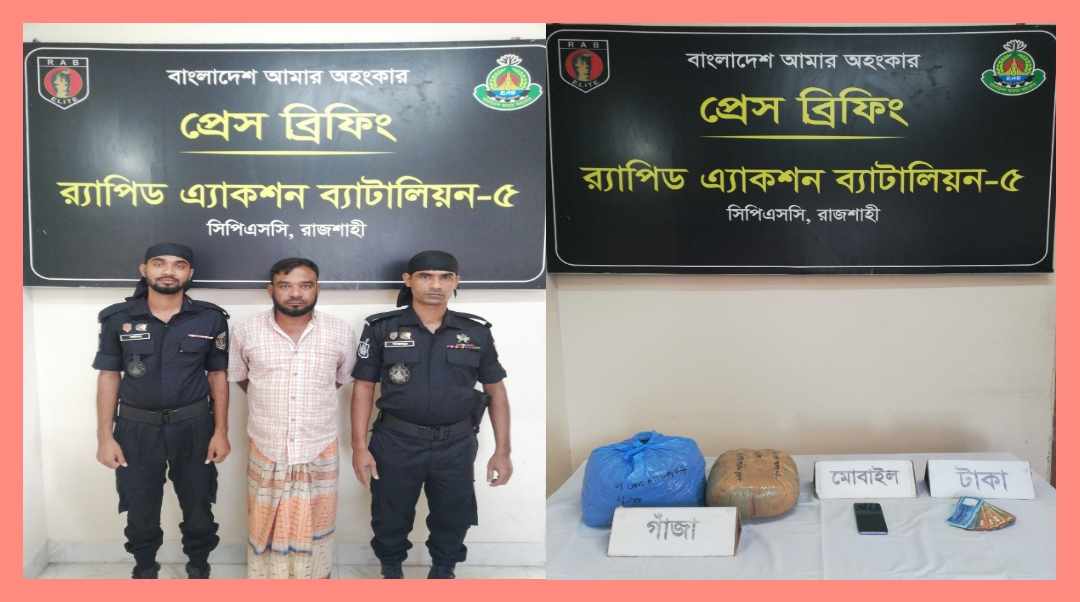 এরই ধারাবাহিকতায় সিপিএসসি, র্যাব-৫, রাজশাহী কর্তৃক ইং ০৯ অক্টোবর ২০২৩ তারিখ ০৬.১৫ ঘটিকায় রাজশাহী মহানগরীর চন্দ্রিমা থানাধীন মেহেরচন্ডী নামক এলাকায় অপারেশন পরিচালনা করা হয়েছে। অপারেশন চলাকালীন সময় যথাক্রমে, (ক) গাঁজা- ৫.১ কেজি, (খ) মোবাইল ফোন- ০১টি, (গ) সীম কার্ড- ০২টি, (ঘ) নগদ- ২,০০০/- (দুই হাজার) টাকা উদ্ধার করতে সক্ষম হন।
