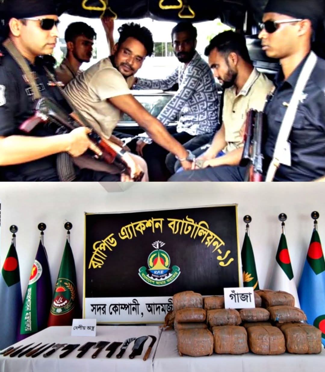 তাদের কাছ থেকে বিপুল পরিমাণ দেশীয় অস্ত্র উদ্ধার করা হয়েছে।