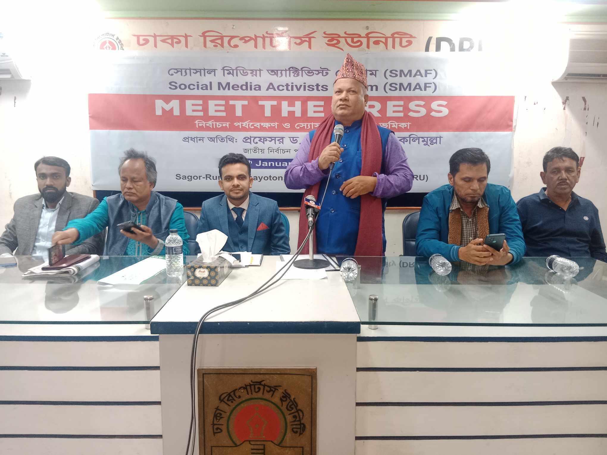 আগামী জাতীয় সংসদ নির্বাচনে ভোটার উপস্থিতি নিশ্চিত করতে গণতন্ত্রে বিশ্বাসী সকল রাজনীতিবিদ, প্রতিদ্বন্দ্বী প্রার্থী, আইন শৃঙ্খলা রক্ষা বাহিনী, সামাজিক, সাংস্কৃতিক ও মানবাধিকার সংগঠন ও গণমাধ্যমকে উদ্বুদ্ধ করার উদাত্ত আহ্বান জানিয়েছেন নির্বাচন পর্যবেক্ষণ সংস্থা সাকো এর প্রধান সমন্বয়কারী মুহাম্মদ আতা উল্লাহ খান। ৭ জানুয়ারী২০২৪ অনুষ্ঠিতব্য দ্বাদশ জাতীয় সংসদ নির্বাচন পর্যবেক্ষণ ও সোস্যাল মিডিয়ার ভুমিকা শীর্ষক আলোচনা সভা ও সর্বশেষ সার্বিক পরিস্থিতি পর্যালোচনা নিয়ে সোস্যাল মিডিয়া অ্যাক্টিভিটিস ফোরাম (SAMF) কতৃক ঢাকা রিপোর্টাস ইউনিটির সাগর-রুনি মিলনায়তনে আয়োজন করা হয় আলোচনা ও সংবাদ সম্মেলন। সংগঠনে সমন্বয়ক, কমনওয়েলথ উন্নয়ন ও মানবাধিকার কর্মী,নির্বাচন পর্যবেক্ষক মু.মহিউদ্দিন আমিনের সভাপতিত্বে অনুষ্টিত অনুষ্ঠানে প্রধান অতিথি হিসেবে ভার্চুয়ালি বক্তব্য রাখেন জাতীয় নির্বাচন পর্যবেক্ষণ পরিষদ (জানিপপ) এর চেয়ারম্যান প্রফেসর ড.নাজমুল আহসান কলিমুল্লা। তিনি ভার্চুয়ালি সংযুক্ত হয়ে নির্বাচন পর্যবেক্ষণ ও সর্বশেষ সার্বিক পরিস্থিতি সম্পর্কে বক্তব্য তুলে ধরেন।সভায় বিশেষ অতিথি হিসেবে উপস্থিতি ছিলেন সোস্যাল এ্যাডভান্সমেন্ট এন্ড কো-অপারেশন অর্গানাইজেশন(সাকো)র প্রধান সমন্বয়ক, বিশিষ্ঠ গণ মাধ্যম ও মানবাধিকার ব্যক্তিত্ব মুহাম্মদ আতা উল্লাহ খান, তিনি নির্বাচন পর্যবেক্ষণ ও মানবাধিকার পরিস্থিতি স্যোসাল মিডিয়ার ভুমিকা সম্পর্কে গুরুত্বপূর্ণ আলোচনা করেন, আরো উপস্থিত ছিলেন সাকোর নির্বাহী পরিচালক মাহবুবুল আলম তিনি নির্বাচন পর্যবেক্ষণ ও বিভিন্ন বিষয়ে সমস্যার কথা ও পরিস্থিতি সম্পর্কে তুলে ধরেন, অনুষ্ঠানে বাংলাদেশ নির্বাচন কমিশন কতৃক নিবন্ধিত ১২টি পর্যবেক্ষক সংস্থার প্রধান সমন্বয়ক ও প্রতিনিধিগণ উপস্থিত ছিলেন সভার আরো উপস্থিত ছিলেন আন্তর্জাতিক মানবাধিকার কমিশন বাংলাদেশ চ্যাপ্টার প্রেসিডেন্ট এম,এ,হাসেম রাজু বর্তমান দেশের নির্বাচন ও মানবাধিকার পরিস্থিতি বিষয়ে আলোচনা করেন,মানবাধিকার সংস্থা আইন ও সহায়তা কেন্দ্র (আসক) ফাউন্ডেশনের কেন্দ্রীয় ভাইস প্রেসিডেন্ট আল আমিন ইয়াসিন উপস্থিত থেকে নির্বাচন পর্যবেক্ষণ ও সোস্যাল মিডিয়ার ভুমিকা নিয়ে কথা বলেন। সভায় বাংলাদেশ পরিবেশে সুরক্ষা আন্দোলনের আহ্বায়ক মোহাম্মদ শহিদুল ইসলাম,নির্বাচন পর্যবেক্ষক নিবন্ধিত সংস্থা সোসাইটি ফর সোস্যাল এডভান্সমেন্ট অব রুলাল পিপস (সার্প) এর নির্বাহী পরিচালক মো:আবুল হোসেন, এস,কে কল্যাণী ফাউন্ডেশনের শ্যামল কুমার,হিউম্যান ইকোনমিক ডেভেলপমেন্ট সোসাইটি (হিডস) সভাপতি মো: রুহুল আমীন, ইকো কনর্সান এসোসিয়েশনের সাইফুর রহমান,গরীব উন্নয়ন সংস্থা (জি,