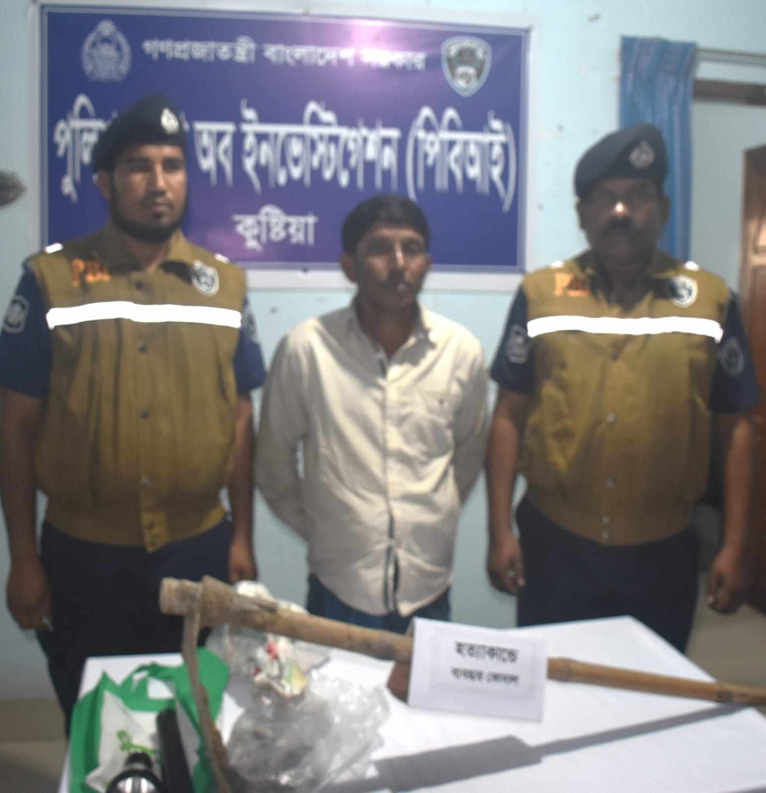 অ্যাডিশনাল আইজিপি বনজ কুমার মজুমদার বিপিএম (বার), পিপিএম সঠিক তত্ত্বাবধান ও দিক নির্দেশনায় পিবিআই কুষ্টিয়া জেলার ইউনিট ইনচার্জ পুলিশ সুপার জনাব মোঃ শহীদ আবু সরোয়ারের সার্বিক সহযোগিতায় পিবিআই কুষ্টিয়ার একটি চৌকস দল মামলার মূল রহস্য উদঘাটনে মাঠে নামে। তদন্তের সকল কলাকৌশল অবলম্বন করে জানা যায় ঘটনার সাথে আনোয়ার জড়িত। শনিবার(৩০ শে মার্চ) বিকালে আনোয়ারকে প্রাথমিক জিজ্ঞাসা করার জন্য নিয়ে আসলে । তথ্যপ্রযুক্তির ব্যবহার ও টানা জিজ্ঞাসাবাদের একপর্যায়ে আনোয়ার স্বীকার করে যে, সে তার পিতাকে রাতের আধারে কিছু গোপন কথা বলার জন্য গোরস্থান সংলগ্ন মামলার ঘটনাস্থলে নিয়ে যায়। সেখানে নিয়ে পিছন থেকে সজোরে কোদাল দিয়ে ভিকটিমের মাথায় একাধিক আঘাত করে। এতে মাথার মগজ ছিন্ন ভিন্ন হয়ে যায়। ভিকটিম পড়ে গেলে আঘাত করে বুকের হাড় ভেঙ্গে ফেলে এবং মৃত্য নিশ্চিত করে।দীর্ঘদিনের দাম্পত্য কলহ, ধার দেনা, পারিবারিক অশান্তি, নিজ পুত্র শিশির (২০) এর দুর্ব্যবহার ইত্যাদি কারণে আনোয়ার পূর্ব পরিকল্পিতভাবে তার পিতা খেজের আলীকে হত্যা করে মর্মে জানায়। তার দেয়া তথ্য ও দেখানো মতে হত্যায় ব্যবহৃত কোদাল রবিবার (৩১ শে মার্চ) সকালে পিবিআই কুষ্টিয়া টিম উদ্ধার করে। আনোয়ারকে আদালতের মাধ্যমে জেল হাজতে প্রেরণ করা হয়েছে।
