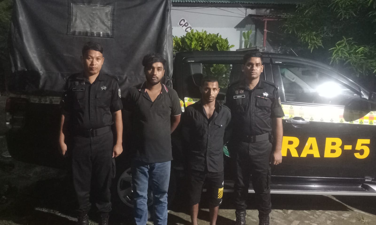 ২১ আগস্ট ২০২৪ ইং তারিখ ২৩:৩০ ঘটিকায় সিপিসি-১, চাঁপাইনবাবগঞ্জ, র্যাব-৫, রাজশাহীর একটি আভিযানিক দল চাঁপাইনবাবগঞ্জ জেলার সদর থানাধীন পৌরসভাস্থ ০৪নং ওয়ার্ড সিপিসি-১,র্যাব ক্যাম্প চাঁপাইনবাবগঞ্জ এর সামনে চাঁপাইনবাবগঞ্জ হতে রাজশাহীগামী পাঁকা রাস্তার উপর অভিযান পরিচালনা করে আসামী ১। মোঃ নাসির (২৬), পিতা-মোঃ দেলবার আকন্দ, সাং-শেখটোলা, থানা-শিবগঞ্জ, জেলা-চাঁপাইনবাবগঞ্জ, ২। মোঃ সজিব মিয়া (২২), পিতা-মোঃ জাকির মিয়া, সাং-আকসিন কোল্লাবাড়ী, থানা-কসবা, জেলা-ব্রাহ্মণবাড়ীয়াদ্বয়কে গাঁজা-৬৯ কেজি ৭০০ গ্রাম এবং গাঁজা বহনের ০১টি পিকআপ সহ গ্রেফতার করে।