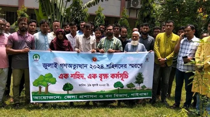 মোঃ মিঠু মিয়া গাইবান্ধা জেলা প্রতিনিধি: ২০২৪ সালের গণঅভ্যুত্থানে গাইবান্ধা জেলার শহীদ ছয় সন্তানের স্মরণে গাইবান্ধা জেলা প্রশাসনের উদ্যোগে বৃক্ষরোপণ কর্মসূচি অনুষ্ঠিত হয়েছে। শনিবার (১৯ জুলাই ২০২৫) সকালে গাইবান্ধা সরকারি