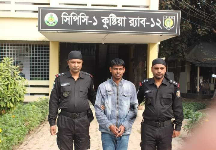 প্রেস বিজ্ঞপ্তি- কুষ্টিয়া দৌলতপুর উপজেলায় আপন দুই ভাই মনিরুল (২৪) ও মাসুমকে (২০) অপহরণের পর গুলি করে হত্যার দায়ে যাবজ্জীবন দণ্ডপ্রাপ্ত পলাতক আসামি সুমন আলীকে (৩৯) গ্রেফতার করেছে র্যাব-১২ কুষ্টিয়া ক্যাম্পের অভিযানিক দল।